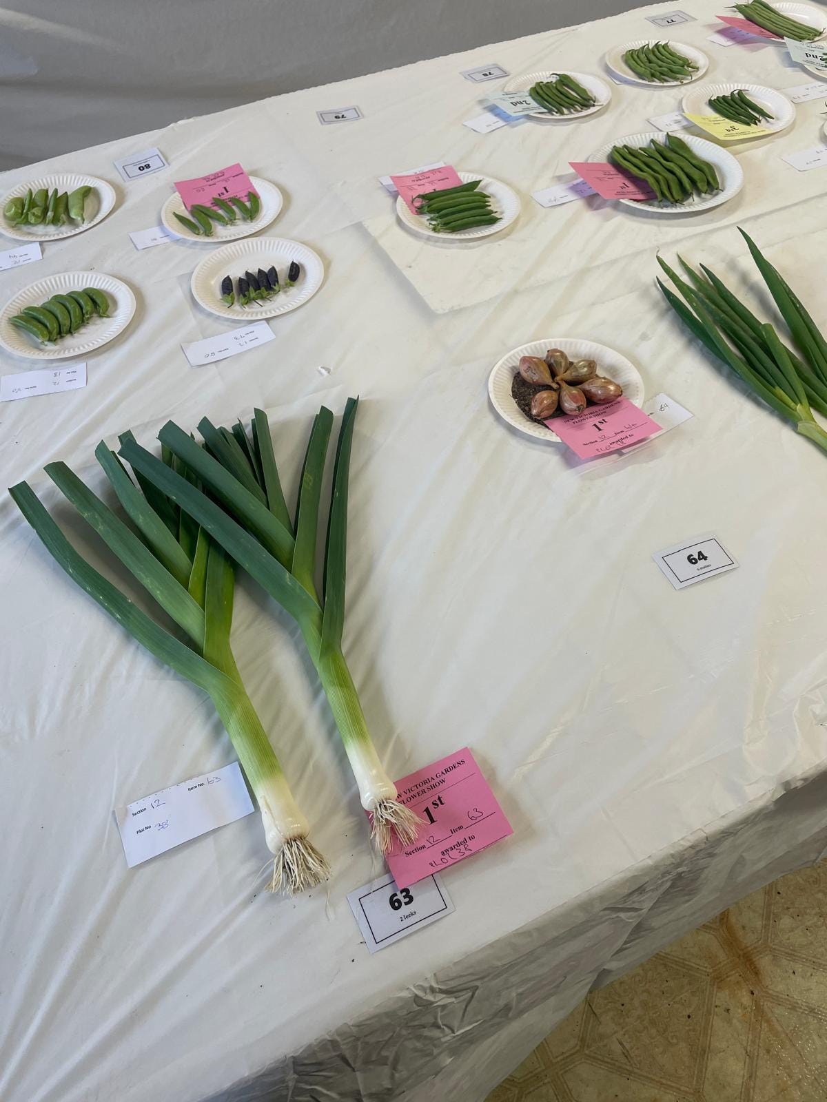 a prim-prize-winning-pair of laid out leeks grown at the end of my street